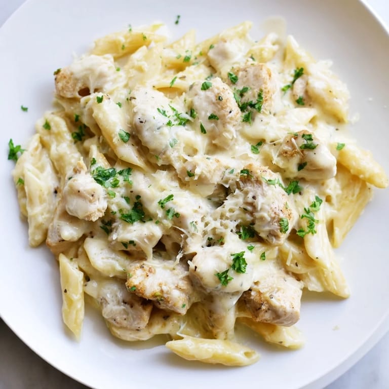 I've tried adding handfuls of fresh spinach or steamed broccoli to the pasta mixture, and the bright green tucked throughout is both pretty and adds a fresh counterpoint to all that richness. Some nights I'll use rotisserie chicken from the market when I'm short on time, and honestly, nobody can tell the difference. You can swap fettuccine or rigatoni for the penne if that's what you have on hand, and the dish adapts beautifully.
