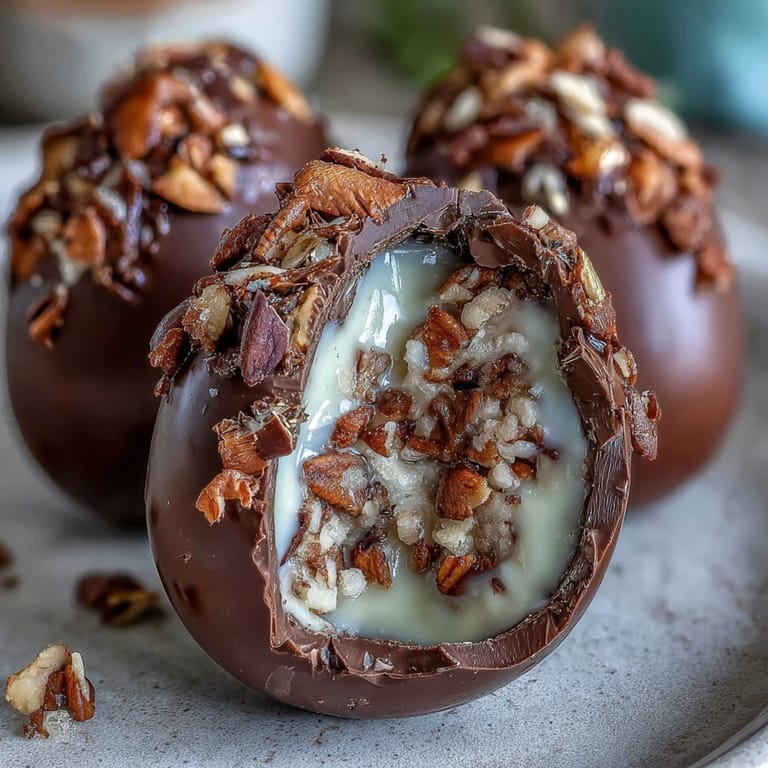 Save Last spring, I found myself standing in a Dubai mall, mesmerized by those impossibly glossy chocolate eggs in the window of a luxury confectionery. The strawberry-dusted shells caught the light like jewels, and I couldn't stop thinking about them weeks later. That obsession led me to my kitchen on a quiet Sunday afternoon, determined to recreate that magic with my own twist of hazelnut crunch hidden inside. What started as curiosity became my new Easter tradition, and honestly, these eggs taste even better when you've made them yourself.