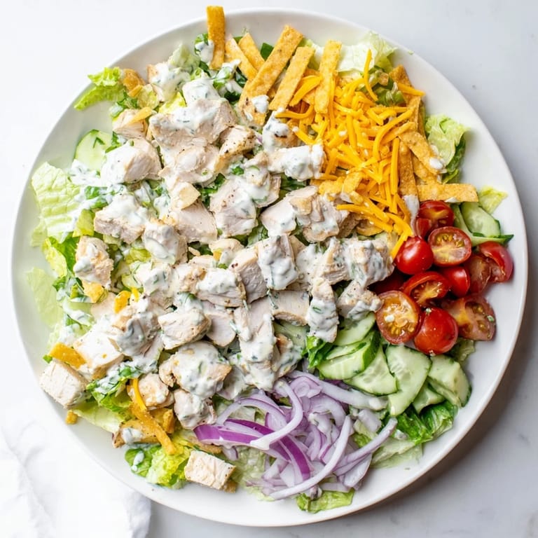 Save This salad became a regular at our impromptu Tuesday night dinners after my sister declared she'd happily eat it every single week. There's something about the combination of warm spiced chicken and cool creamy dressing that makes even ordinary evenings feel like a celebration.