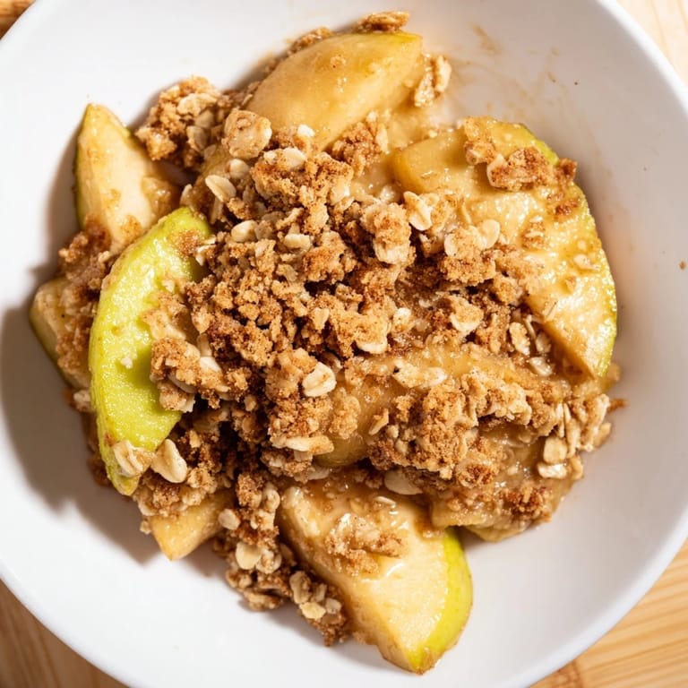 - Let it rest for 5-10 minutes before serving so the filling can set slightly, making it easier to scoop. The warmth matters here—serve it while it's still steaming, optionally with vanilla ice cream or custard that will melt into the gaps between crumble and apple.